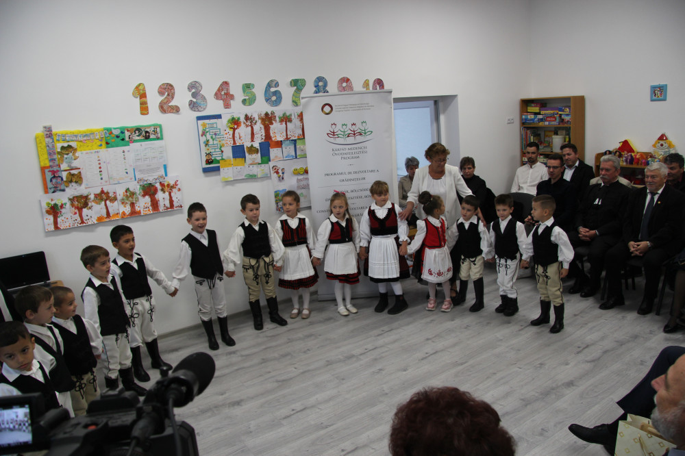 Szilágyi Péter, a magyar Miniszterelnökség nemzetpolitikáért felelős helyettes államtitkára azért mondotta fontosnak az épület megújítását, mert a gyerekeket ott érő apró élmények – közös mondókázások, éneklések – hozzájárulnak ahhoz, hogy anyanyelvük rögzüljön és gazdagodjon, az ott kapott értékeket pedig idővel továbbörökítsék. A magyar nyelv fontosságát elsőrendű kérdésként kell kezelni, ezért törekszik az anyaország kormánya, hogy a Kárpát-medencében élő minden magyar közösség számára biztosítsa az óvodától egyetemig terjedő tanulás lehetőségét. Ha itt nőnek fel és itt tanulnak, jövőt is fognak teremteni – mondotta. A magyar kormány beruházásai által a program keretében Erdélyben kilencven óvoda és bölcsőde épült vagy épül, bő 380 újul vagy újult meg, a korszerűsítések és az épületek felszerelése által háromszázezer magyar gyermek számára tették lehetővé a minőségi oktatást – mondotta Szilágyi Péter helyettes államtitkár.