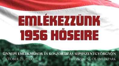 SEPSISZENTGYÖRGYÖN ma 12.30 órakor koszorúznak a polgármesteri hivatal homlokzatán található Gloria Victis táblánál, 13 órakor Szalay Attila 1956-os mártír Csíki utcai emléktáblájánál. A Kónya Ádám Művelődési Ház udvarán, az ’56-os emlékparkban 19 órakor kezdődik a megemlékezés.