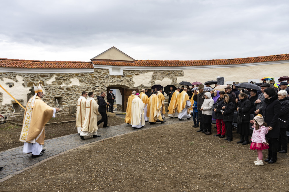 Időnként el-eleredt az ég csatornája, az időjárás is meglehetősen hűvös volt, ennek ellenére mind a templom, mind a várfallal övezett kert megtelt hívőkkel a jeles eseményen. A szervezők mindenről gondoskodtak: mivel a templomban alig kétszáz személynek jutott ülőhely (a szűk járatokat a kamerások és fotósok számára tartották fenn), kint is padok és székek szolgálták a kényelmet, az eseményt pedig nagyméretű kivetítőn lehetett végigkövetni, így a falakon kívülre szorultak sem maradtak le egyetlen mozzanatról sem.