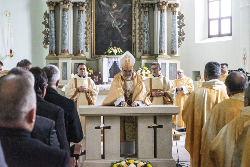 Kovács Gergely prédikációjában kifejtette: bizonyára mindenki számára ismerős a jó érzés, amikor egy feladatot, egy munkát vagy egy megbízatást teljesít. „Az az érzés is ilyen, amely minket és sokakat feltölt a Szent Mihály-templom éveken át tartó türelmes és kitartó restaurálási munkálatainak befejezése után. Öröm és hála tölti el szívünket, lelkünket, ha erre a megújult csodaszép templomra tekintünk. De Jézus az imájában nemcsak visszatekint, hanem előre is. Tanítványaiért aggódik. Mi lesz velük nélküle? És Jézus ebben is példakép számunkra. Nekünk is szeretettel és felelősséggel kell gondoskodni a folytatásról. Hogy az elkezdett mű, terv és munka ne szakadjon meg, hanem életképes maradjon. Ez a templom elődjeinknek a hitéből született, és az eltelt évszázadok alatt is sokat kellett tenni érte. Sok hívő és lelkipásztor szeretetének, áldozatos hitének, munkájának a tanújele. És mint a főegyházmegye érseke, hálásan köszönöm mindenkinek. Mindenki áldozatos munkáját, akik közreműködtek, akik tettek azért, hogy a templom ilyen szépen megújuljon, és szabadjon Hölgyes Pál plébános atyát név szerint is megemlítenem. A templom ne csak külsejét hirdesse, hanem a saját hitünket is, de arról se feledkezzünk meg, hogy a mi lelkünk is templom. Mindannyian a Szentlélek temploma vagyunk. Hittel viseljük gondját a kőből épült templomnak, de lelkünk templomának is” – hangsúlyozta az érsek.