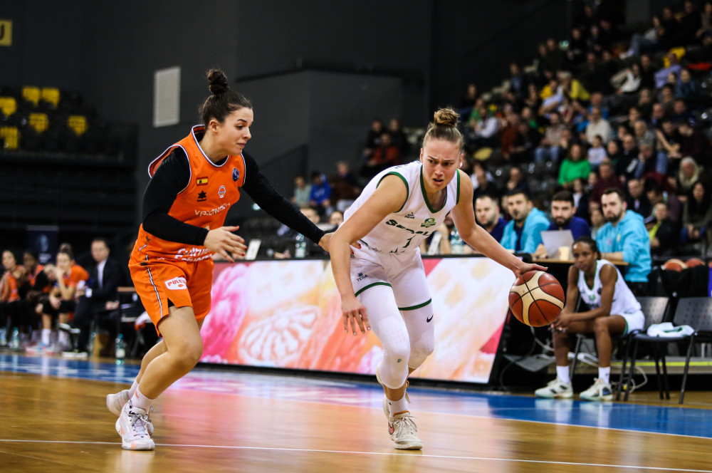 Lassan indult be a tegnapi székely–spanyol párharc, mivel a csapatok a találkozó elején roppant óvatosak voltak, olyannyira, hogy a 4. percig csak két-két kosarat szereztek. Ezt követően a Valencia felpörgette a játékot, újabb két perc elteltével Casas triplájának is köszönhetően már 11 pontos előnyben volt Ruben Burgos alakulata (4–15). Lányaink küzdöttek, de az első negyed végéig csak három kosárral tudták áttörni a jól záró vendégvédelmet (10–21). A második játékrészt a mieink kapták el jobban, Hrisztova duplájával és Pašić távoli dobásával felzárkóztak nyolc pontra (15–23), ez a különbség pedig percekig megmaradt a két együttes között. A folytatásban, egy spanyol időkérést követően teljes egészében megváltozott a játék képe, ismét a valenciai játékosok akarata érvényesült a pályán, a zöld-fehérek pedig igazi center hiányában csak szenvedtek a palánk alatt. A 19. percben 10 pont volt a Sepsi-SIC hátránya (22–32), amely a nagyszünetre 19 egységre gyarapodott (22–41).