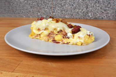 Hozzávalók: 50 dkg kukoricadara, 50 dkg juhtúró, 10 dkg húsos szalonna, 10 dkg füstölt szalonna, 5 dkg kolbász, 3 fej lilahagyma, 1 fej vöröshagyma, 10–15 dkg reszelt sajt, 1 doboz (175 g) tejföl.
