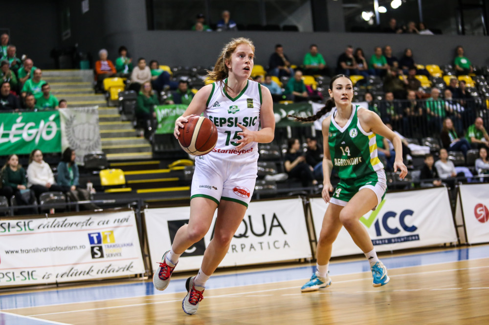 A címvédő és házigazda Sepsi-SIC szombaton a 3. percben már 10 ponttal vezetett a másodosztályban érdekelt Agronómia Bukarest ellen, a különbség pedig megmaradt az első negyed végére is (27–17). A másodikban főkét az ifjúsági játékosaink voltak pályán, így kiegyenlítődött a küzdelem, de a zöld-fehérek ennek ellenére tovább tudták növelni előnyüket (49–35). A térfélcserét követően rákapcsoltak a szentgyörgyi lányok, és harmincpercnyi játék után végleg eldőlt a párharc (77–42). Az utolsó felvonásban sem lassított Zoran Mikes csapata, még úgy sem, hogy a bosnyák edző pihentette a fontosabb játékosait. A Sepsi-SIC végül 107–52-re nyerte meg a negyeddöntőt, a legjobb négy között pedig következett a Konstancai VSK elleni rangadó.