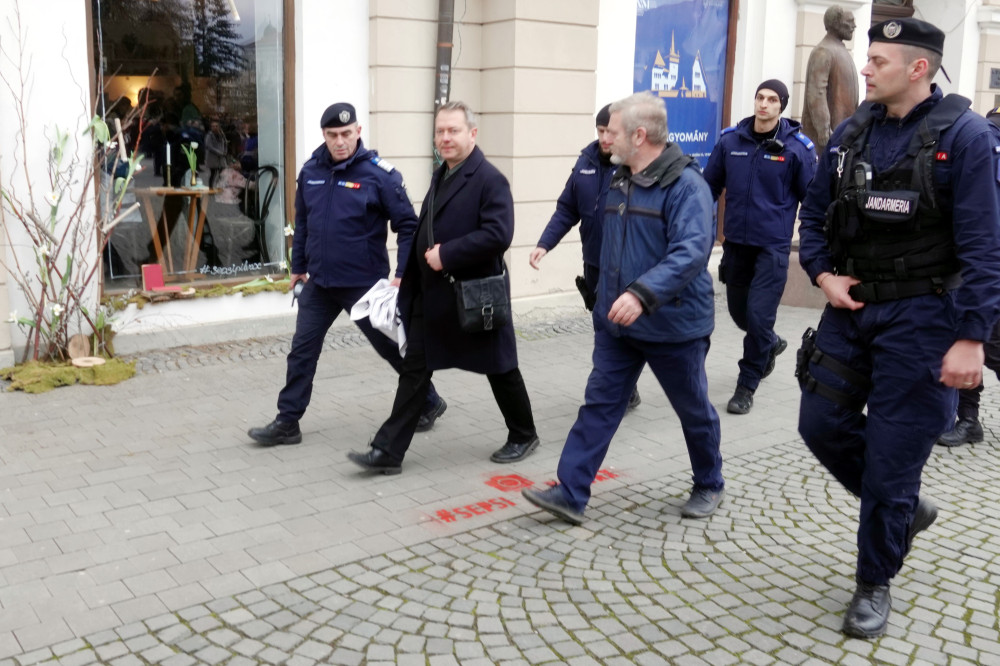 Tîrnoveanut és társát csendőrök kísérték ki a tömegből, volt nála molinó. Fotó: Szekeres Attila