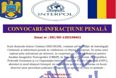 Újabb csalási módszer terjed az online térben: a román rendőrség vagy nemzetközi rendőrségi szervezetek nevében üzeneteket küldenek a kiszemelt áldozatoknak, így próbálva megszerezni egyebek mellett a pénzügyi adataikat – figyelmeztet a megyei rendőrkapitányság.