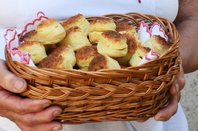 Hozzávalók: 50 dkg liszt, 25 dkg margarin, 2 dkg élesztő, 3 kanál tejföl, 1 csapott kanál só, 1 csipet porcukor, 20 dkg főtt, tört krumpli, 20 dkg túró, 2 tojás, 10 dkg reszelt sajt.