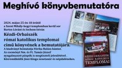 BARTOS LÓRÁNT ÉS IOCHOM ISTVÁN Kézdi-Orbaiszék római katolikus templomai című könyvének bemutatójára május 25-én 18 órától a Lemhény és Kézdialmás közötti Szent Mihály-hegyi templomban kerül sor. A kiadványt bemutatja Fórika Balázs kántor. Az eseményt ft. Tamás József nyugalmazott püspök is megtiszteli jelenlétével. Közreműködik Jánó Kinga zenetanár és népdalénekes.