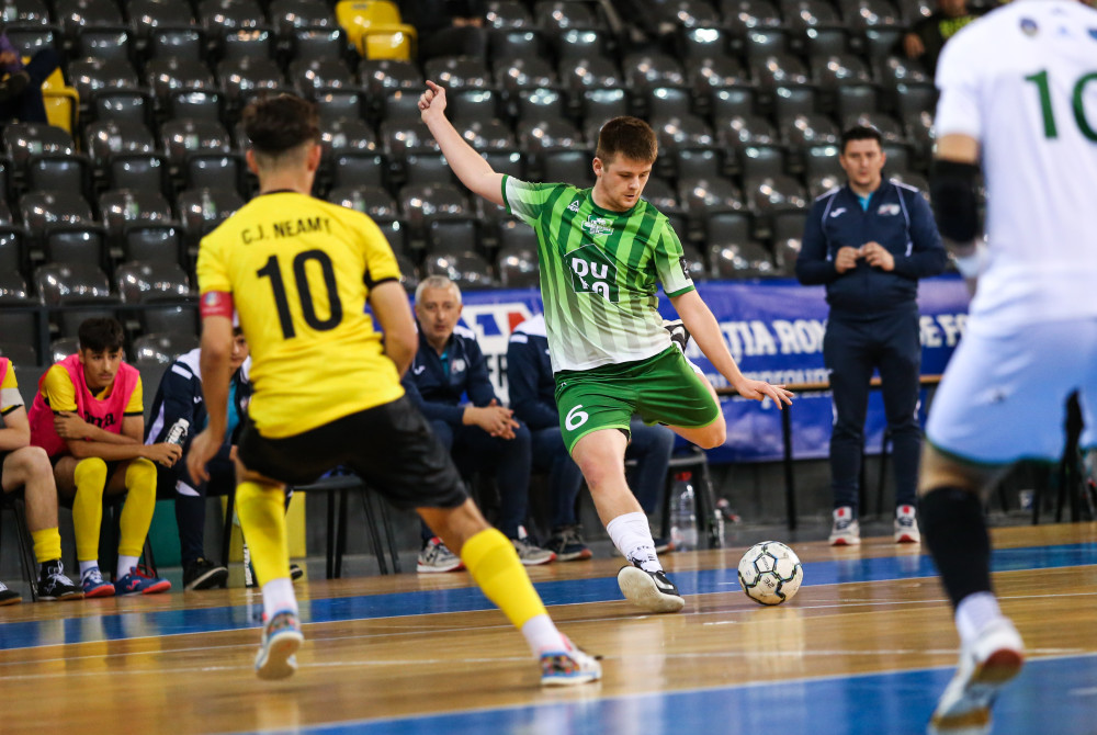 Bár az övé volt az első kapura rúgás az FK Székelyudvarhely elleni elődöntőben, mégis a Sepsi-SIC játszott idegesebben szombaton. Ez hamar meg is látszott: Boga a 2. percben előnyhöz juttatta a Hargita megyeieket, az 5.-ben pedig Popovics növelte az előnyüket (0–2). Nálunk Fábián és Bende veszélyeztetett, a 7. percben viszont Bálint találatával már hárommal vezetett az Udvarhely. Kevéssel később lesérült Bende, és a zöld-fehérek elvesztették egyik alapemberüket. A bajt tovább fokozta első számú kapusunk, Korodi kiállítása egy kezezésgyanús helyzet után. A 11. percben kigyűlt a háromszéki gárda hatodik csapathibája, a tízméterest Boga értékesítette (0–4), a folytatásban pedig Király, Fábián, Kusztos és Asztalos próbálkozásai rendre kimaradtak. A térfélcsere után is vészkapussal támadott a Sepsi-SIC, de a kockázatos taktika rosszul sült el. Előbb Boga, majd Popovics pontozott (0–6), a 25. percben pedig Asztalos szépített (1–6). A kihagyott ziccereinkre a 28.-ban Popovics góllal válaszolt, majd egy perccel később Asztalos duplázott (2–7). A folytatásban az FK-tól Szász kétszer volt eredményes, amire a 36. percben Bodor még tudott felelni (3–9). A véghajrához közeledve minden az udvarhelyiekről szólt, akik Boér, László és Jakab révén újabb gólokat szereztek, így a Sepsi-SIC 12–3-ra kikapott, és készülhetett a Futsal Ceahlăul Piatra Neamț elleni bronzmérkőzésre.