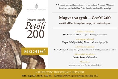 MAGYAR VAGYOK – PETŐFI 200. Gyergyószentmiklós, Székelykeresztúr, Déva, Nagyenyed, Székesfehérvár, Temesvár és Kolozsvár után a Székely Nemzeti Múzeum sepsiszentgyörgyi kiállítóhelyére, a Lábas Házba érkezik a Magyar vagyok – Petőfi 200 című képzőművészeti kiállítás, mely ma 17 órakor nyílik meg ünnepélyes keretek között. A tárlat fővédnöke Kövér László, a Magyar Országgyűlés elnöke.