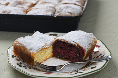Meggyes töltelék 1 tepsihez (4 rúd): 2,5 kg meggy, 1 zacskó fahéj, 40 dkg cukor, 3 tasak vaníliás cukor, 30 dkg zsemlemorzsa megszórni.