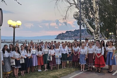 Következő nap Ohrid óvárosában idegenvezetőnk olyan helyekre vitt bennünket, mint a Szent Szófia-templom, a fellegvár, a görög színház, Plaosnik, a Szent János-templom, a gyöngymúzeum, mindezek mellett pedig mesélt nekünk az ohridi gyöngy különleges és titkos előállításáról. Ezt követően magunk fedezhettük fel a macedón ízvilágot, és az óváros különböző üzleteiben kedvünkre vásárolhattunk szuveníreket, tárgyakat, melyeket az emlékekkel együtt hazahoztunk magunkkal. Vacsora után ismét Ohrid városában kötöttünk ki népviseleti virágos szoknyákban, népi ingekben, az óváros főterén, ahol bemutattuk előadásunkat a bolgár kórus fellépése után. Az a pár csepp eső sem rettentett el a fellépéstől, kihoztuk a maximumot önmagunkból és a csütörtöki napból is.