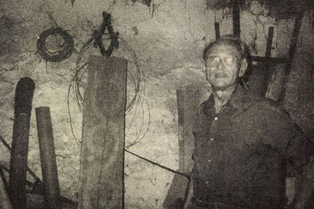 Lengyel Andor a kapu maradványával 1993-ban. Fotó: Deregán Gábor / Pest Megyei Hírlap