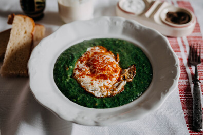 Miután felforrt, kevés tejfölt kavarunk bele, majd tükörtojással tálaljuk.
