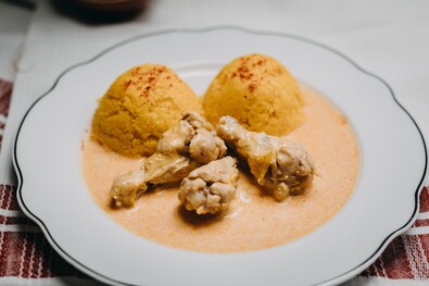 Elkészítése. Az apróra vágott hagymát az olajon üvegesre dinszteljük, megszórjuk pirospaprikával, összekavarjuk, majd hozzáadjuk a csirkeszárnytőt, sózzuk, borsozzuk, és időnként kevés vizet öntve alája, lassú tűzön, lefödve puhára pároljuk. A lisztet elsodorjuk 3 evőkanál tejföllel, hozzáadjuk a megfőtt csirkéhez, kiforraljuk, majd beletesszük a maradék tejfölt, és azzal is felforraljuk. Közben a tojássárgáját elkavarjuk a citromlével, a paprikáshoz adjuk, de már nem forraljuk fel. Puliszkával tálaljuk.