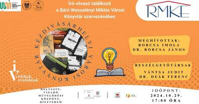 A Báró Wesselényi Miklós Városi Könyvtár várja az érdeklődőket a kortárs erdélyi irodalom kiválóságait bemutató rendezvényére ma 17 órától a Vigadó Művelődési Központ dísztermébe. Meghívottak: Borcsa Imola és Borcsa János. Beszélgetőtársak: Vántsa Judit és Deák Ferenc.