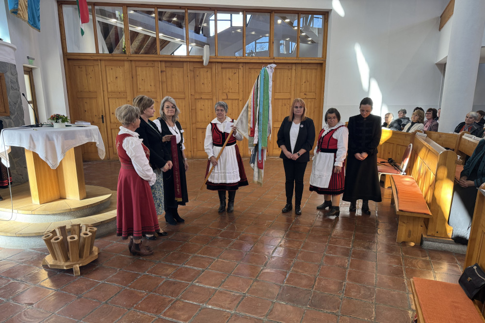 Ezt követően az egyházmegyei nőszövetségi zászló ünnepélyes átadása következett. Egy évig a lisznyói asszonytestvérek vigyázták a zászlót, mint mondták: egészen hozzászoktak, így most kissé sajgó szívvel, mégis jó reménységgel adják tovább a sepsiszentgyörgyi belvárosi nőszövetségnek, bízva abban, hogy ők is ugyanolyan féltő szeretettel fogják megőrizni, majd egy év után büszkén továbbadni, ahogyan azt ők is tették. A felemelő pillanatot Tánczos András presbiter szavalata és Könczey Csaba kántor éneke tette még ünnepélyesebbé.