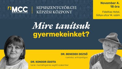 A Mathias Corvinus Collegium (MCC) eseményeként a sepsiszentgyörgyi Fidelitas Hotelben november 4-én, hétfőn 18 órától arra a kérdésre keresik a választ, hogy mire tanítsuk gyermekeinket. Egyre gyakrabban fogalmazódik meg a kérdés oktatókban, szülőkben az óvodától az egyetemi szintig: mi jelenti ma a hasznos tudást a gyerekek, fiatalok, fiatal felnőttek számára?