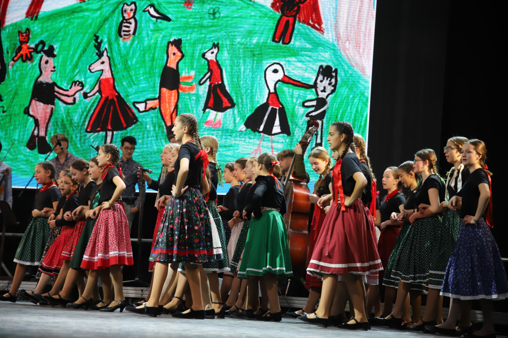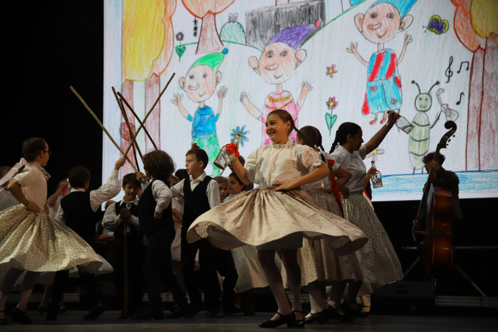 Aprók és ifjú táncosok a színpadon