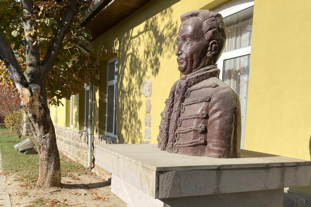 Benkő József szobra az iskola előtt. Fotó: Fazakas Attila