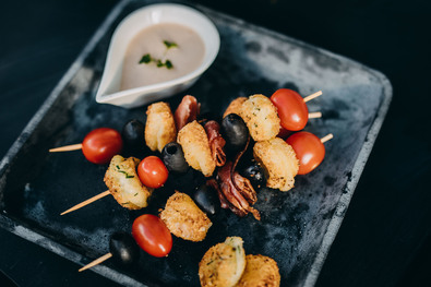 Elkészítése. A tojásból a mustárral és az olajjal gyors majonézt készítünk. Hozzáadjuk a tejfölt vagy a joghurtot, valamint a ketchupot és a citromlevet, belereszeljük a hagymát és a fokhagymát, beleszórjuk a pirospaprikát, sózzuk és összekavarjuk. Tálalásig hűtőben tartjuk. A sajtgolyókhoz felverjük a tojásfehérjéket, lazán beleforgatjuk a lisztet és a sütőport, majd beledolgozzuk a sajtot és a finomra vágott szaporahagymát – könnyen formázható kemény tésztát kell nyernünk. A masszából apró golyókat formázunk, prézliben megforgatjuk, majd forró olajban kisütjük, és törlőkendőre szedjük, hogy a zsiradékot leitathassuk róla. Zöldségekkel és olajbogyóval felváltva hurkapálcikára tűzve még melegen tálaljuk, és kis tálacskában melléje tesszük az ezersziget-öntetet.