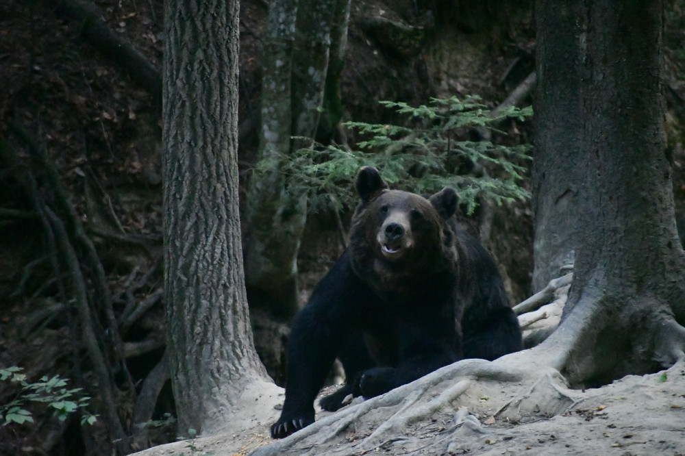 „Ha az út szélén van medve, akkor is sétálunk tovább, nem nézünk a szemébe, elmegyünk mellette libasorban” – mondja Péter Levente 44 éves természetfotós, aki gyakran jár fel a Zabola melletti lesre. Ez a zabolai kastélyszálloda vendégei számára is nyitott program, persze csak kísérettel. „Elsőre sose vállalom be, hogy kimegyünk az erdőbe sétálni, tudatosan azért, hogy medvével találkozzunk, mert nem ismerem az embert. Ezért kell először ilyen biztonságos lesre jönni. Volt már olyan, aki a kunyhóban ájult el” – meséli Csákány László, a Szemerja-Görgő Egyesített Közbirtokosság elnöke, majd Péter Levente fűzi tovább a szót. „Régen attól féltem, hogyan reagál a medve. Ma már attól félek, miként reagál az ember. Mindig meg tud lepni. Én rengeteg időt töltök el velük. Vizsgálom őket, köztük a kapcsolatot, miként alakul, különféle változásokra, hatásokra hogyan reagálnak. Régóta közel élek hozzájuk, látom azt az érzelmi világukat és azt az érzékenységet, ami bennük is megvan. A medve úgy van beállítva a köztudatban, legalábbis nálunk, hogy veszélyes, nagy, vérengző – de senki nem ismeri az intelligenciáját, belső világát, ami lényegében meghatározza. Azért, mert emberi félelemnek és manipulációnak vagyunk kitéve, s nincs rá lehetőség, hogy közel kerüljünk hozzájuk. Nagyon hasonlít az étrendje, a viselkedése az emberéhez, s a hétköznapjai is.”