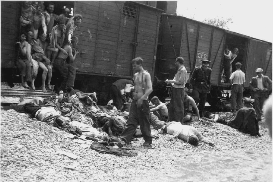 A mészárlást túlélő több ezer zsidót a vasútállomásra vitték, ahol megalázták, kirabolták és megverték, mielőtt lezárt tehervagonokba zsúfolták őket. A hermetikusan lezárt szerelvények a nyári melegben kis sebességgel araszoltak – néha oda-vissza irányban – különböző moldvai vasútállomások között: a mészárlást túlélőket a kiszáradás és a fulladás tizedelte tovább. Az első vonaton, amely Călărași irányába indult volna, 5000 zsidót zsúfoltak össze, 1011-en maradtak életben. További 2000–2700 zsidót Podu Iloaiei felé indítottak útnak, közülük 700-an maradtak életben. A vasútállomásokon senki sem közelíthette meg a szerelvényeket, hogy vizet adjon a haldoklóknak, kinyissa a vagonajtókat, hogy levegőhöz jussanak, eltávolítsa a holttesteket vagy bármilyen (orvosi vagy egyéb) segítséget nyújtson. A holttesteket kifosztották és az útvonal mentén különböző tömegsírokba temették el. A halálvonatok áldozatai közül 1200-at Podu Iloaiei melletti tömegsírokban találtak meg, de Târgu Frumosban, illetve a vasútvonalak mentén, más állomások közelében a mai napig kerülnek elő tömegsírok: a Iași melletti Popricani településen 2010-ben tártak fel egy többtucatnyi áldozat csontvázát rejtő tömegsírt.