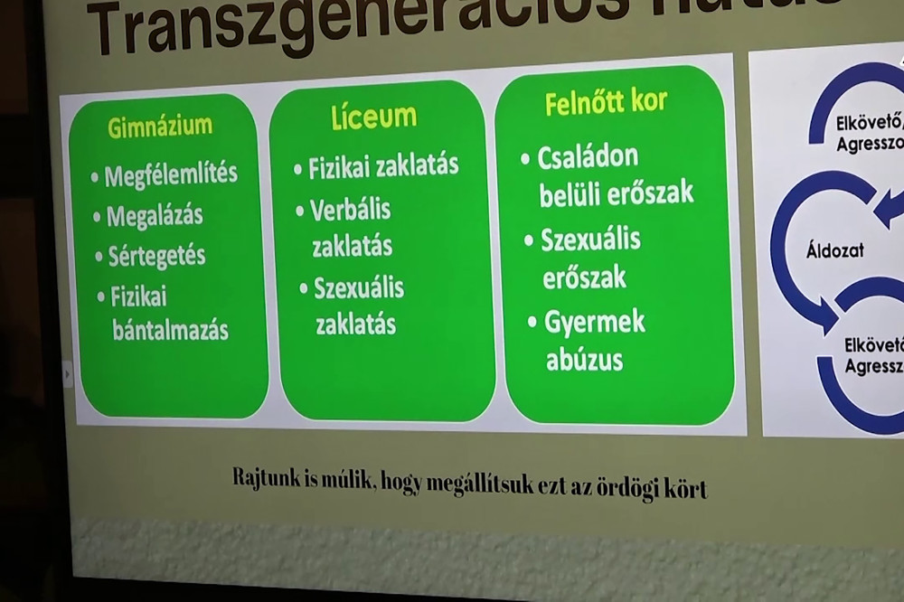 A probléma megértéséhez egy másik kisfilmet is ajánlott, ennek címe: Hogyan segíthet? – Kisfilm az iskolai kirekesztésről. Végezetül a hallgatóságot arra kérte: segítsenek a mai, nagyon nehéz helyzetben lévő generáción. Ne legyünk tétlen szemlélők! – buzdította hallgatóságát.