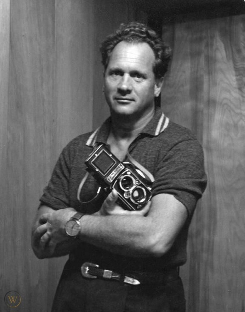 André de Dienes Rolleiflex fényképzőgépével 1948-ban. Fotó: Dienes Andor / Muus Collection