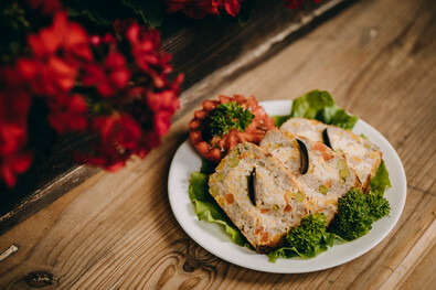 Friss zöldséggel körítve tesszük a hidegtálra.
