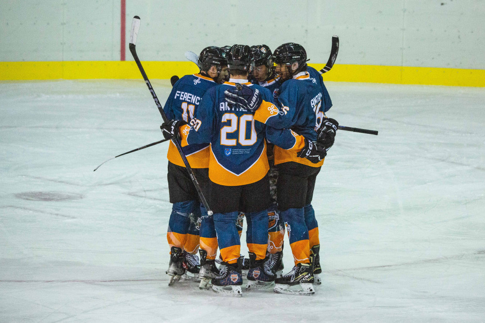Tegnap mindkét csapat jobban figyelt a védekezésre, így az első felvonásban mindössze egy gól született. A házigazdák a kezdés után hamar létszámfölényben találták magukat, ezen időszakban közel jártak a vezetés megszerzéséhez, azonban Molnár Zsombor kétszer is a kapuvasat találta telibe. Ezután a vendégeknek is több helyzetük volt, ám ezeket Béres Szilárd magabiztosan védte, aztán a 14. percben a narancs-kék mezesek megérdemelten szereztek vezetést. Gecse Olivér előkészítése után Róth Zoltán előbb két csellel elfektette a kapust, aztán a hálóba lőtte a korongot (1–0).