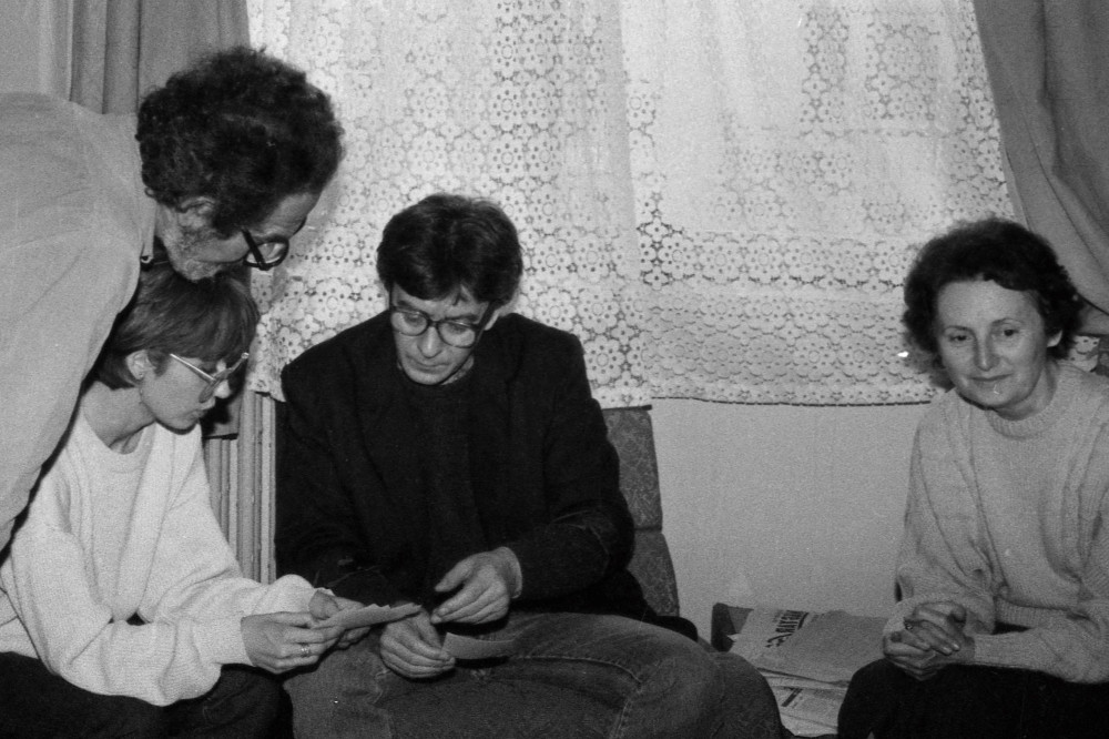 Cseh Tamás Sylvester Lajoséknál 1990. februárjában. Balról jobbra: Sylvester Lajos, Sylvester Anna, Cseh Tamás és Sylvester Teodóra