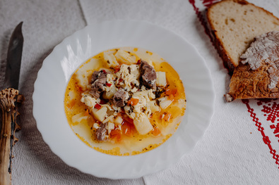 Az ízletes levest csípős paprikával és ecettel tálaljuk.