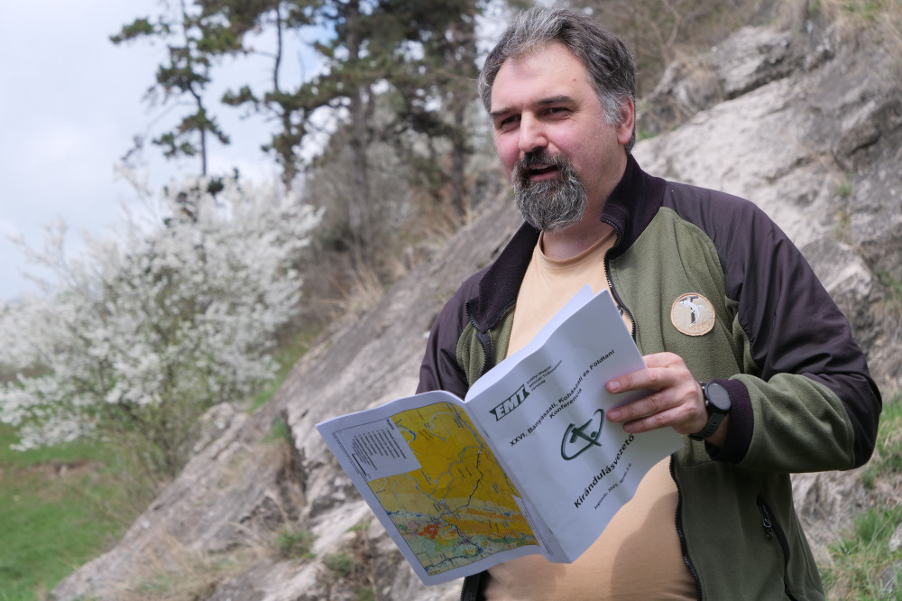 Silye Lóránd egyetemi docens magyaráz az áprilisi Bányászati, Kohászati és Földtani (BKF) konferencia kirándulásán. Fotó: Mózes László