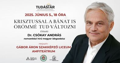 Csókay András nemzetközi hírű magyar idegsebész Krisztussal a bánat is örömmé tud változni címmel tart előadást ma 18 órától a kézdivásárhelyi Gábor Áron Szakképző Líceum amfiteátrumában.