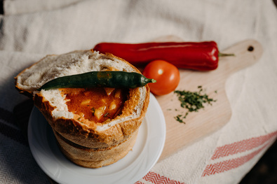 Elkészítése. A hagymát és a paprikaféléket kockára vágjuk, a zsíron megdinszteljük, megszórjuk pirospaprikával, majd hozzáadjuk a kockára vágott húst, sózzuk, borsozzuk, köménymagot hintünk rá, összekeverjük, és időnként kevés vizet öntve alája puhára főzzük. Ezalatt megpucoljuk és felkockázzuk a zöldséget, elkészítjük a levesbetétet, és erős köménymagteát főzünk. Ha a hús már puha, felöntjük a forró alaplével és a köménymagteával, illetve beletesszük a kockára vágott gyökérzöldségeket és a krumplit, majd felforraljuk. A levesbetéthez felverjük a tojást, és annyi lisztet keverünk, illetve gyúrunk hozzá, hogy könnyen formázható tésztát nyerjünk. Ezt kézzel kb. 1 centi vastag hosszú rúddá sirítjük, majd késsel apró cikkekre vágjuk, és a zöldségek után a fövő leveshez adjuk. Ha megfőtt a levesbetét, egy tálacskába beletesszük a paradicsompasztát, ízlés szerint édes és csípős gulyáskrémet, kevés forró levessel feloldjuk, majd a fövő leveshez adjuk. A végén még sózzuk, ha szükséges, és megszórjuk finomra vágott petrezselyemzölddel. Az ínyenc levest forrón, friss kenyérrel tálaljuk.