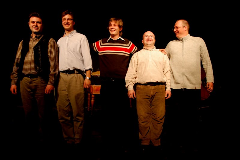 – Molnár Szabi kiválása óta négyen vagyunk állandó tagok. Igyekszünk lefedni a Kárpát-medence teljes zenei palettáját, ami azt is jelenti, hogy mindenki több hangszeren is játszik, olyan formákban, hogy mindig a megfelelő hangzást tudjuk elérni. Szilágyi Laci brácsázik, harmonikázik, tekerőlantozik, gardonyozik, dobol, ha kell. Bajna Gyuri bőgős, csellózik is, ami viszonylag rokon hangszer, de más technikát igényel. A fúvós rész is az övé, és alapvetően gardonyozik is. Vettünk neki egy dudát, egy hangszerbemutatón meg tudja szólaltatni, de a színpadképességig még van egy kevés. Az öcsém, Albi a brácsa mellett cimbalmozik és bőgőzik. A kobzát nem szereti, de néha muszáj neki. Én csak hegedülök, ha kell, brácsázom is, de mivel én vagyok az egyedüli hegedűs, dallamhangszeres, általában én hegedülök vagy énekelek. Illetve van egy táncos lányunk az együttesnél, aki klarinét szakon végzett, őt is használjuk, és nagyon örülünk neki, ő is szereti.