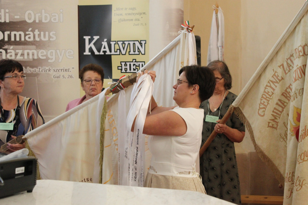 A hangulatos, közösségépítő alkalom Kolumbán Sándor előadásával zárult, csodálatos hangja és a hozzá társuló énekek bizonyságtétele töltötte be a templomot és a lelkeket. A zászlóátadás, szalagok felkötése után ebéddel zárult a nőszövetségek találkozója.
