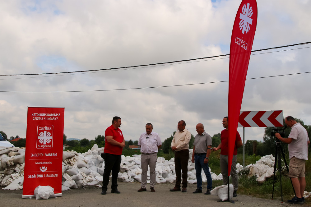 Zagyva Richárd elmondta: a Katolikus Karitász előbb négymillió forint értékű gyorssegélyt juttatott el a térségbe, majd országos gyűjtést indítottak, amely során további tizenhatmillió forint gyűlt össze. Ezt most átadták a Gyulafehérvári Caritasnak, amely a forrást segítségnyújtásra fordítja. „Nemcsak a pénzt, hanem a szívünket is elhoztuk – fogalmazott az igazgató. – A Karitász logójában látható hullámvonalak a szeretet lángjait szimbolizálják. A célunk, hogy ezek a lángok elérjék és felmelegítsék a rászorulók szívét.”