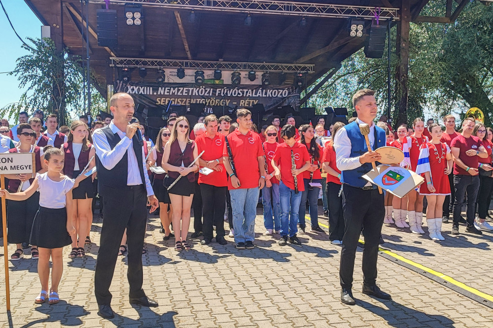 A 33. Nemzetközi Fúvóstalálkozó hivatalos megnyitóján Maksai József, a Rétyi Kováts András Fúvószenekar karnagya köszöntötte a meghívott zenekarokat és a testvértelepülések képviselőit. Kiemelte mindazokat, akik munkájukkal hozzájárultak a találkozó megszervezéséhez – elsősorban Réty község önkormányzatát, a zenekar tagjait és a háttérben dolgozó önkénteseket. A résztvevő karnagyok emlékül egy Balázs Antal által faragott tamburmajor-vezénylőbotot, valamint egy korondi fúvószenész által készített címeres dísztányért vehettek át.