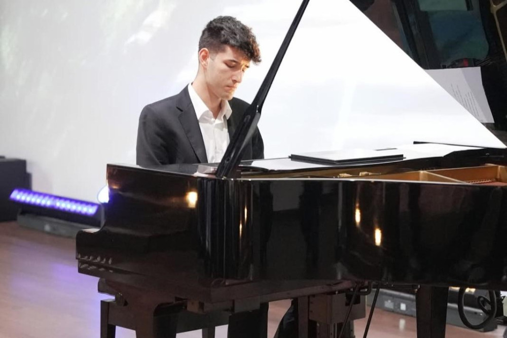 Királyhalmi Gusztáv brassói egyetemi hallgató zongorázik az Oszakai Világkiállításon