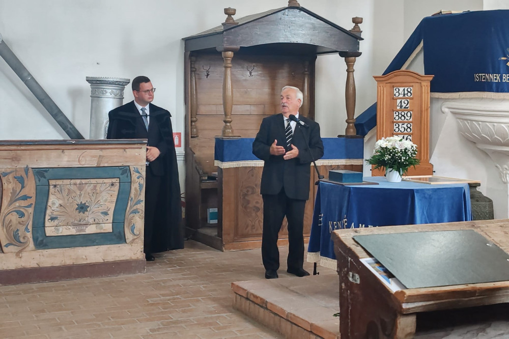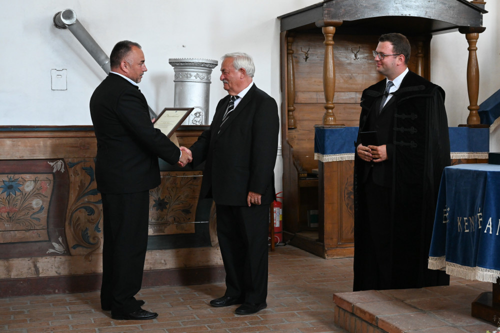 „Betöltöttem őt isteni lélekkel, bölcsességgel, értelemmel és képességgel mindenféle munkára, hogy terveket készítsen kövek vésésére és berakására és mindenféle munka elvégzésére” – ezzel a Mózes második könyvéből vett igével köszöntötte Kató Bélát a Sepsi Református Egyházmegye esperese. Dénes Előd köszönetet mondott „bölcsességgel, értelemmel és nagy-nagy hittel” végzett munkájáért, amellyel Illyefalva mellett a Sepi Református Egyházmegyét is támogatta, gazdagította.