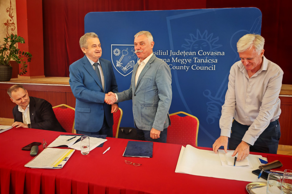 Ünnepélyes keretek között írták alá tegnap a kézdiszentléleki kultúrotthonban azt a szerződést, amely a Kézdiszentlélektől Lemhényig tartó megyei út teljes körű korszerűsítését teszi lehetővé. A 19,3 kilométeres szakasz kilenc települést érint, a beruházás értéke több mint 37 millió euró, melyet európai uniós forrásokból, valamint a román állam és Kovászna Megye Tanácsának hozzájárulásából fedeznek.