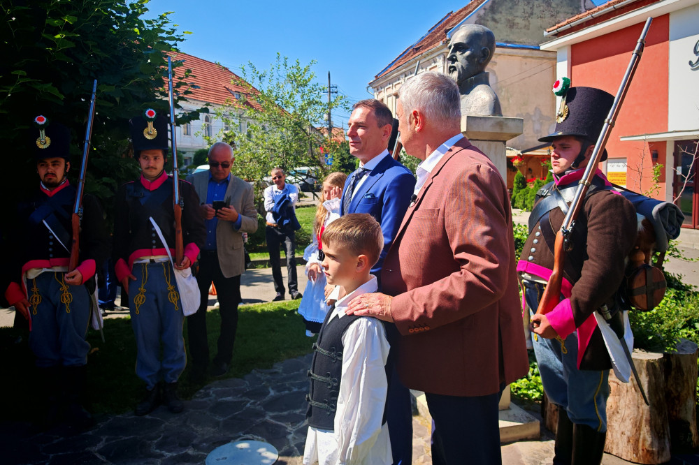Tamás Sándor és Tuzson Bence a szabadságharcos mellszobra előtt