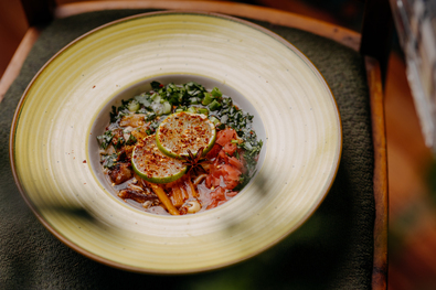 A többi hozzávalót a tálalás előtt készítjük elő: a lime-okat, a csilit és a zöldhagymaszárat felkarikázzuk, a gyömbérrügyszeleteket apró kockára vágjuk, a korianderzöldet finomra aprítjuk, a levesben kifőtt murkot is tetszés szerinti darabokra vágjuk.