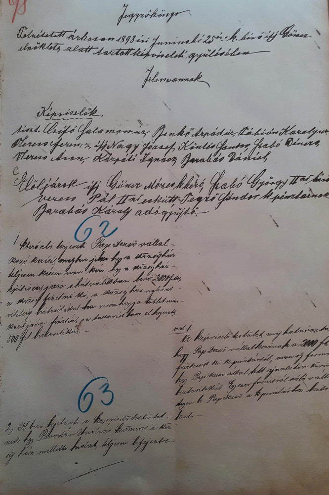 Az 1898-as árkosi falujegyzőkönyv lapja, mely a községház befejezéséről tudósít. A szerző felvétele