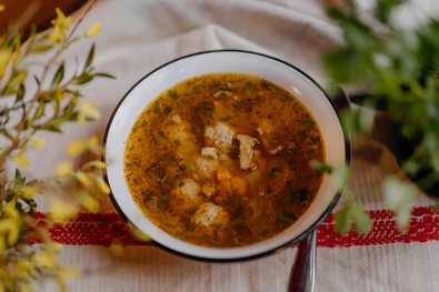 Elkészítése. A zöldségeket megpucoljuk és kockára vágjuk, a gombaféléket pedig felszeleteljük. A zsíron megdinszteljük előbb a hagymát, fokhagymát, hozzáadjuk a kockára vágott gyökérzöldségeket, majd a kápia paprikát és a zöldborsót, végül a felszeletelt gombát. A dinsztelt zöldségeket feltöltjük forró vízzel, sózzuk, borsozzuk, megszórjuk ételízesítővel, teszünk bele 1–2 lestyánágat, majd felforraljuk. Ezalatt elkészítjük a gombócot: a darált húst keverőtálba tesszük, hozzáadjuk a megmosott rizst, a tojásokat, az apróra vágott hagymát és fokhagymát, valamint a finomra aprított lestyánt és petrezselyemzöldet. Az egészet fűszerezzük még sóval, borssal, pirospaprikával és kevés paradicsomlével, majd összegyúrjuk, és vizes kézzel diónyi gombócokat formázunk belőle. Ha már jól fő a leves, beletesszük a gombócokat, majd lassú tűzön addig főzzük, amíg a levesben minden megpuhul. Ekkor hozzáadjuk a paradicsomlevet, ízesítjük házi csiliszósszal és citromlével, majd ismét felforraljuk. Tálalás előtt megszórjuk finomra vágott lestyánnal és petrezselyemzölddel. Friss kenyérrel, tejföllel és csípős paprikával tálaljuk. Szezonban ökörnyelvet (cserepes gerebengombát) is lehet a csorbába tenni, illetve szárított is jó, a lényeg, hogy gomba legyen benne. Ha nincs házi ételízesítőnk és csiliszószunk, használhatunk marhahúsleves-kockát és csípőspaprika-őrleményt.