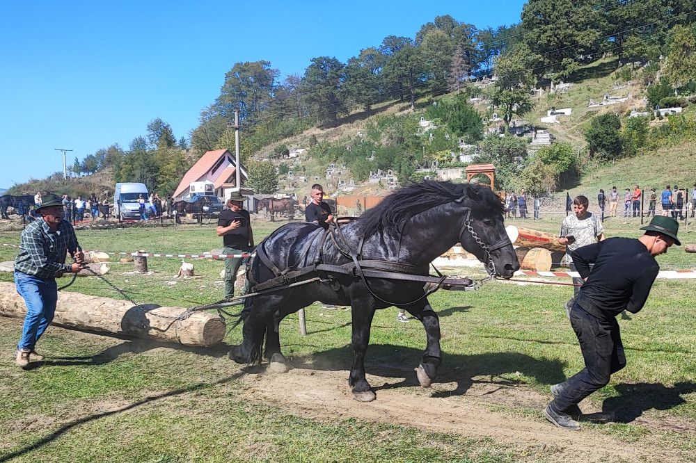 Vasárnap 8 órakor kezdődött a rönkhúzó megmérettetés a nevezéssel és a munkalovak súlycsoport szerinti osztályozásával. Közel ötven induló érkezett felső-háromszéki, orbaiszéki és bodzavidéki településekről. Egyes és kettes fogatok versenyeztek két kategóriában (kis és nagy lovak). A szabály egyértelmű volt: az állatokat kizárólag szóval lehetett biztatni, ostorhasználat nem volt megengedett. A feladat a kijelölt pályán, időkereten belül minél távolabbra elhúzni a súlycsoportnak megfelelő, 4–5 méter hosszú rönköket.