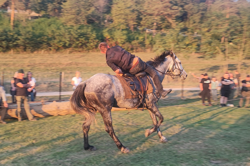Szombaton kora este a futballpálya mellett a Törökkúti lovas kaszkadőrök látványos bemutatója következett: vágtában felfekvés, „halállógás”, elbújás, kozákfüggés, le-fel ugrás, állva lovaglás és több akrobatikus trükk is szerepelt a műsorban.
