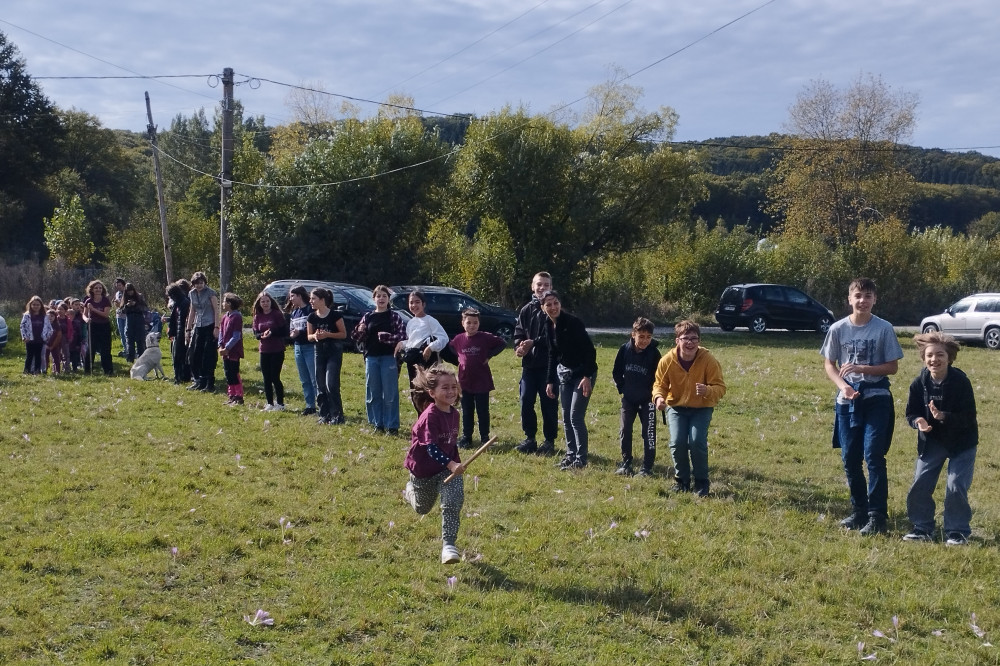Ezután elkezdődtek a bátorságpróbák az óvodások és kisdiákok számára, a legkisebbeknek az óvó nénik, a 0–4. osztályosoknak az 5–8. osztályos diákok és osztályfőnökeik találták ki és vezényelték le a próbákat a különböző helyszíneken. Az óvodásoknak kötélugrás, zsákban ugrálás, négykézláb egyensúlyozás (babzsákkal a háton), talicskajárás, célba dobás és tapintós játék szerepelt a próbák között, végül pedig – miután sikerült összegyűjteni hat különböző színű karkötőt – jóságkövet kellett szerezniük a sárkány barlangjából. A kisdiákoknak különböző zöldségeket-terméseket kellett elrendezniük, találós kérdésekre kellett válaszolniuk, de stafétafutás, kötélhúzás, vizes palackok cipelése is a feladatuk volt. Valamennyi résztvevő élvezte a közös játékot a ragyogó napsütésben. A réten pompázó őszikikerics-tenger tökéletes összhangban volt a gyermekek lila pólójával, mintha a természet is ünneplőbe öltözött volna erre a napra.