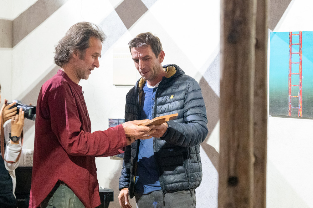Végezetül a házigazda egy-egy Víz-Csűr-logóval ellátott régi tetőcseréppel ajándékozta meg Horváth Leventét és Éltes Barnát, aki korábban állított ki a csűrgalériában, majd a szokásos tábortűzzel és poharazgatással ért véget a finisszázs.